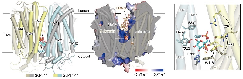 Using an integrated cryo-electron microscopy (cryo-EM) single-particle approach, a research group led by Prof. ZHAO Yan at the Institute of Biophysics of the Chinese Academy of Sciences, successfully determined high-resolution three-dimensional structures of full-length, wild-type human G6PT1 in multiple functional states.